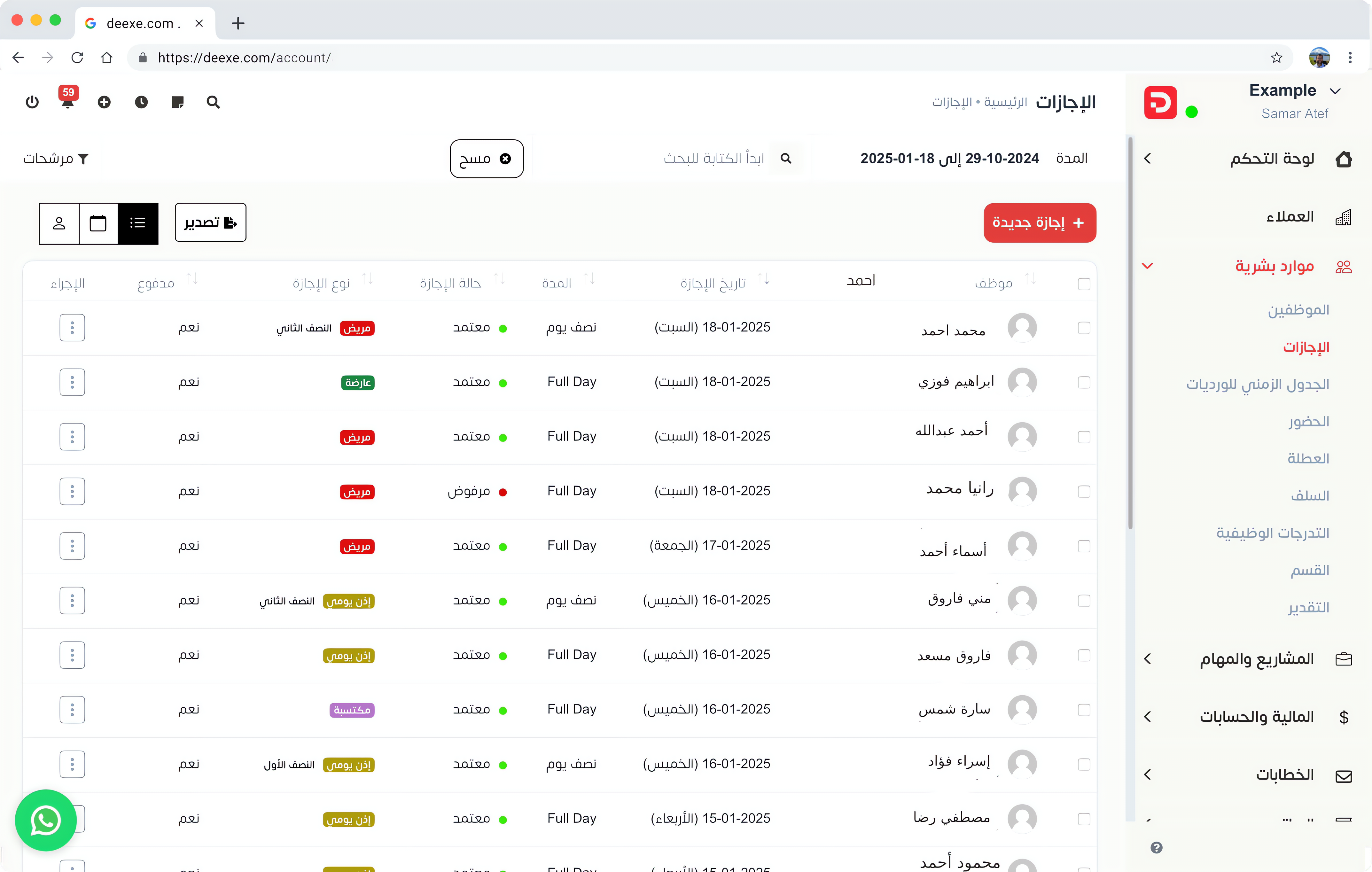 نظام Deexe يتيح لك إدارة شاملة ومتكاملة لموارد شركتك البشرية بأعلى مستويات الدقة والكفاءة، ليكون فريقك نقطة الانطلاق لنجاح أعمالك.